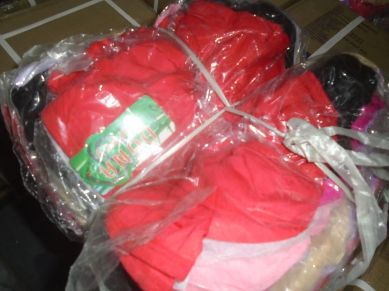 Թվով՝ 2100 հատ, տարբեր գույների: Հագուստը մաքսազերծված չէ և գնորդը պետք է կատարի պահատվության և մաքսային վճարումներ: |